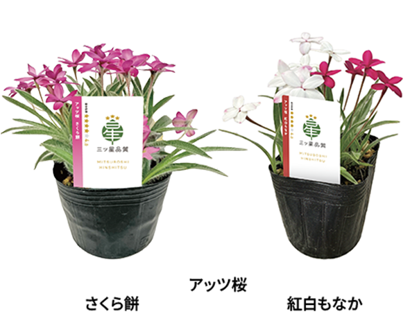 2026年NEWアイテム、「アッツ桜 ‘さくら餅’ ‘紅白もなか’」のご紹介 です。